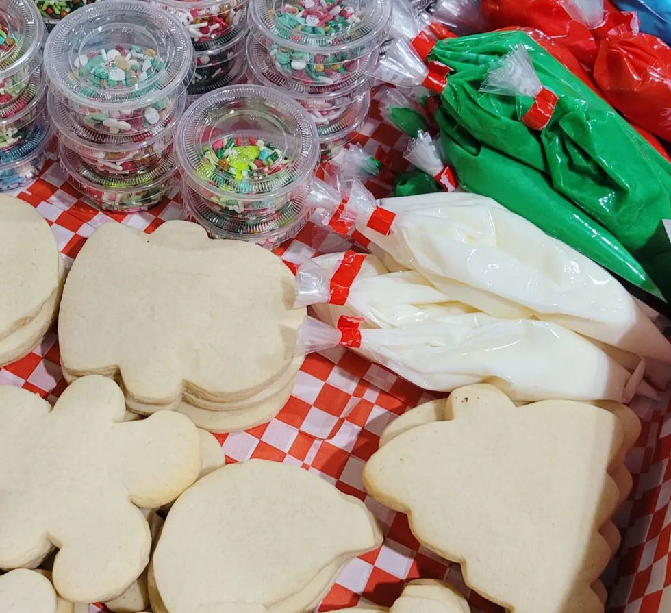 1 Regular Cookie Kit with 6 plain Christmas cookies, 4 icing bags, and 1 festive sprinkle mix